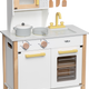 Alle Teile sind aus robustem Holz gefertigt und ideal für kleine Kinderhände geeignet. Perfekt für die Spielküche oder den Kaufladen!